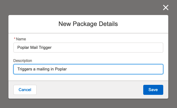 Click the New button in the top right corner and give the new package a recognizable name, then hit Save: