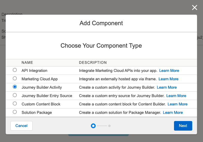 Next click Add Component and you'll want to select the Journey Builder Activity component type: