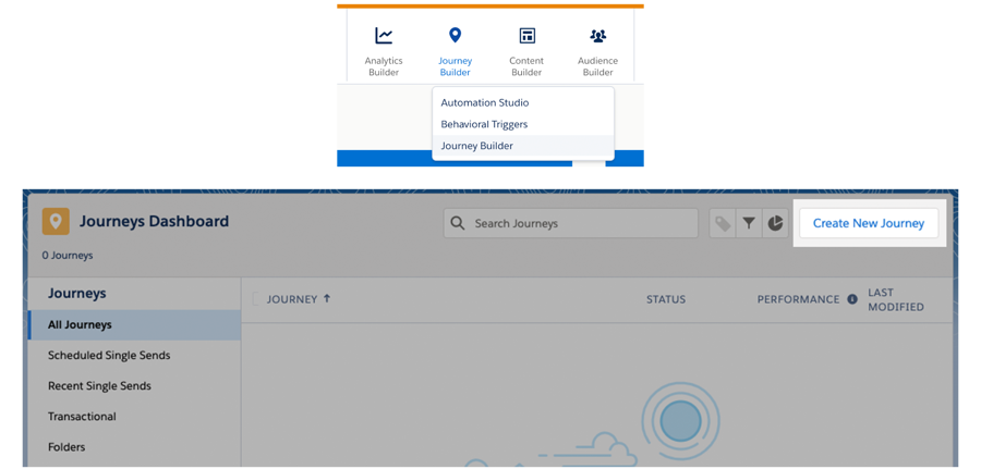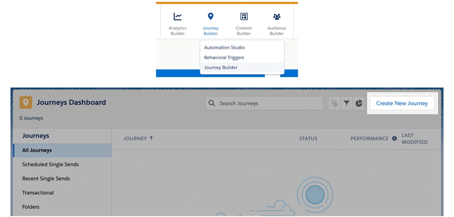 From your SFMC dashboard, navigate to Journey Builder and click Create New Journey.