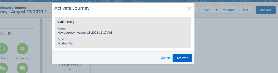 Once you've completed your setup and returned to the Journey dashboard, you're ready to test the trigger connection by clicking Activate!